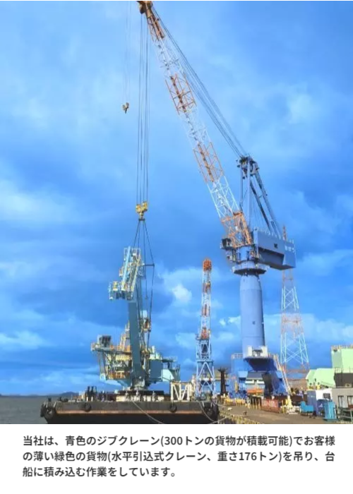 お客様の構内における大型機械、圧力・反応容器など港湾荷役全般を取り扱っています。