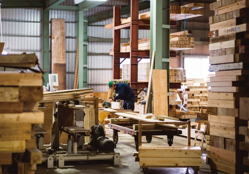 再生可能な地域資源である木材を活用することで、物流や県内企業のサプライチェーンの一部として事業を行っている。