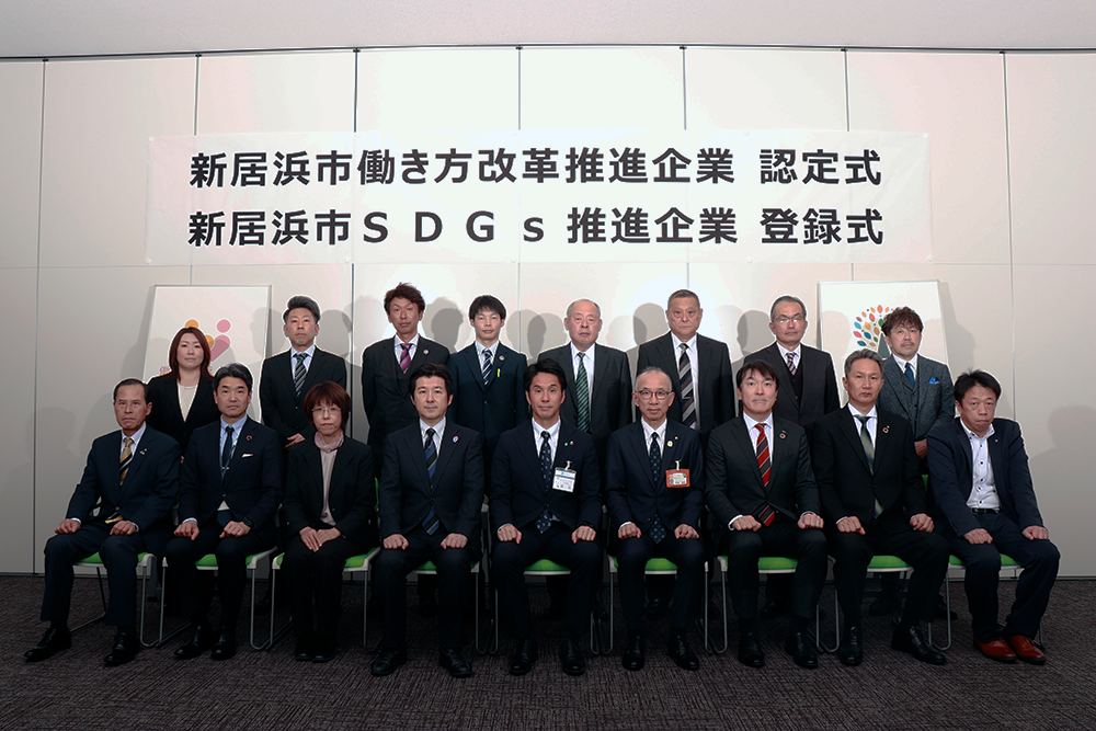 SDGs推進企業・働き方改革推進企業の記念撮影